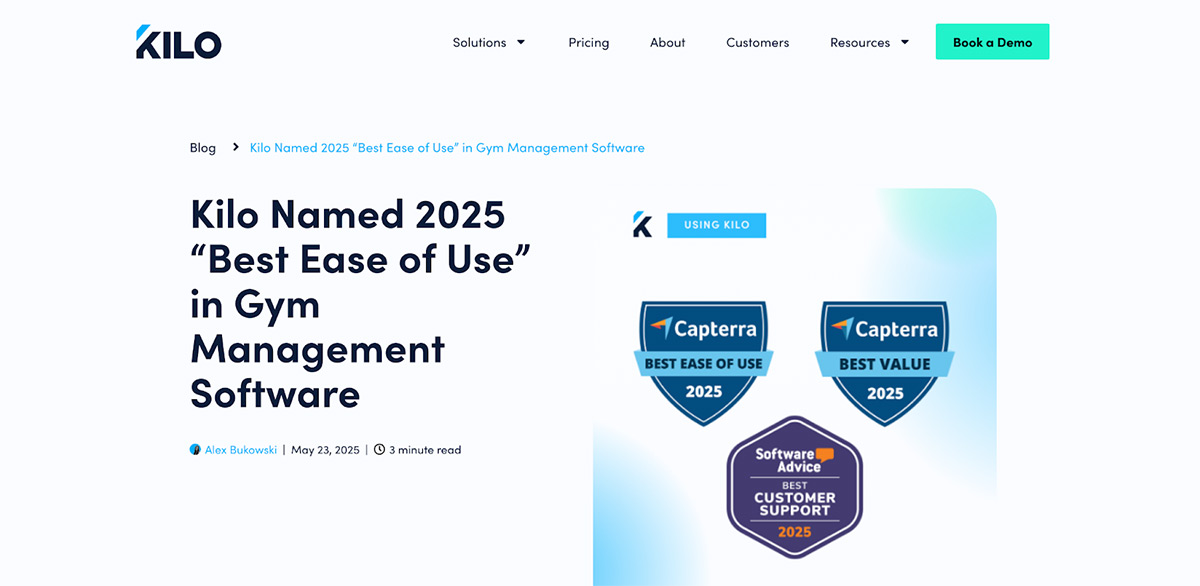In another case, when gym management software Kilo was mentioned, it was alongside their announcement of earning an award from Capterra.