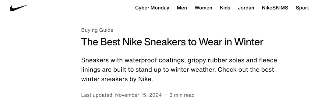 You won’t see a page on Nike.com recommending Reebok, but they will publish an article on “The Best Winter Sneakers” and promote Nike’s own shoes throughout.